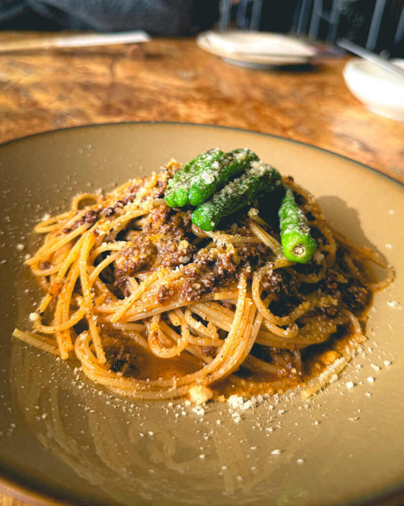 なかば盗撮するかのようにこっそりと撮影したこちらが『やまぐち和牛燦(きらめき)とししとうのボロネーゼ』になります。