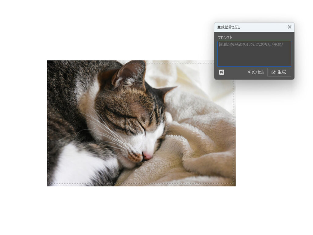こちらを使って生成塗りつぶしを試してみましょう。