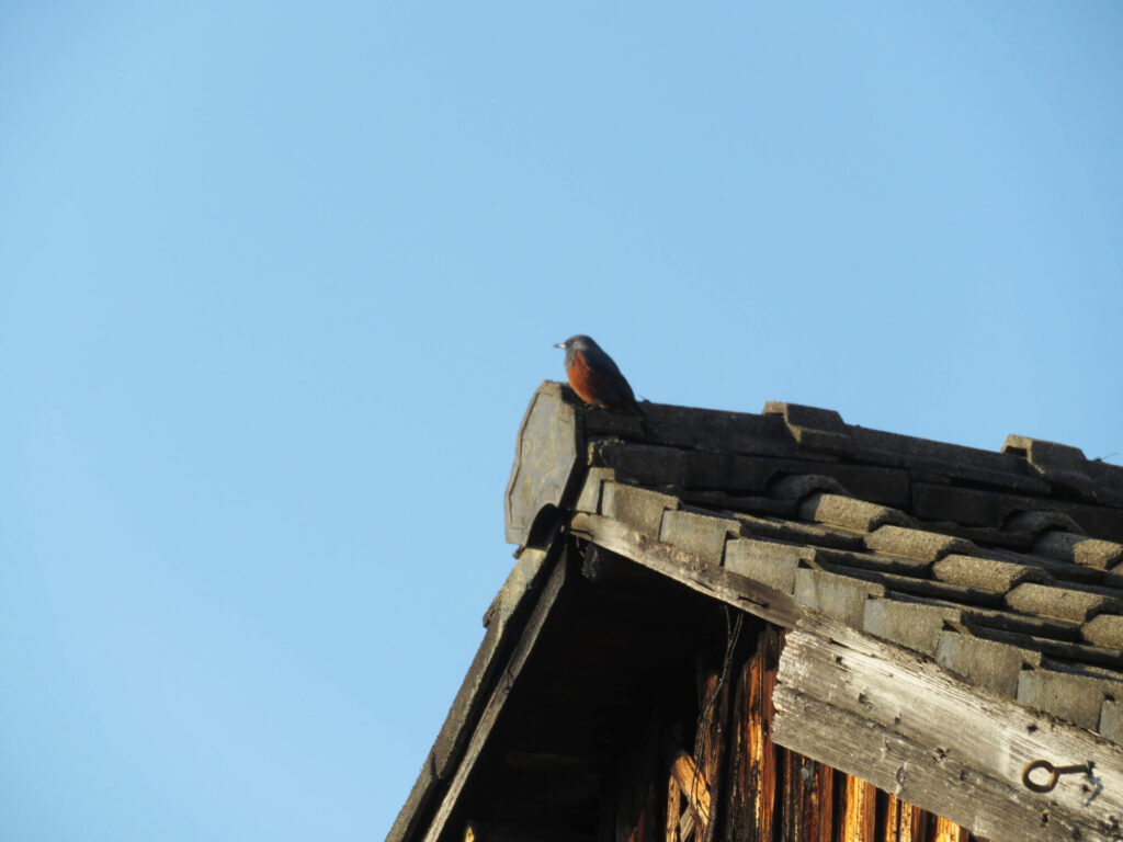 すぐ近くの建物の屋根の上に、一羽の鳥がちょこんと座っていました。